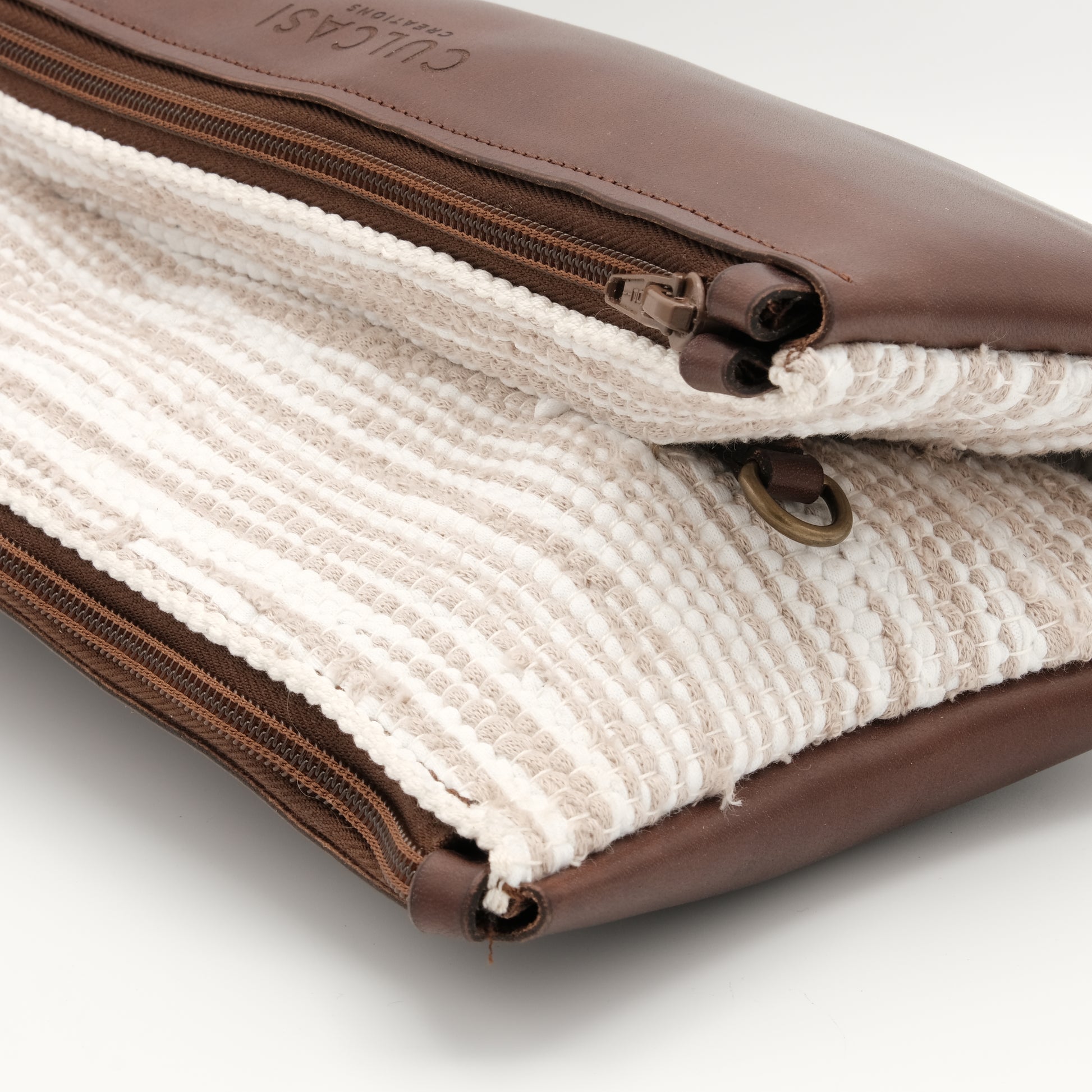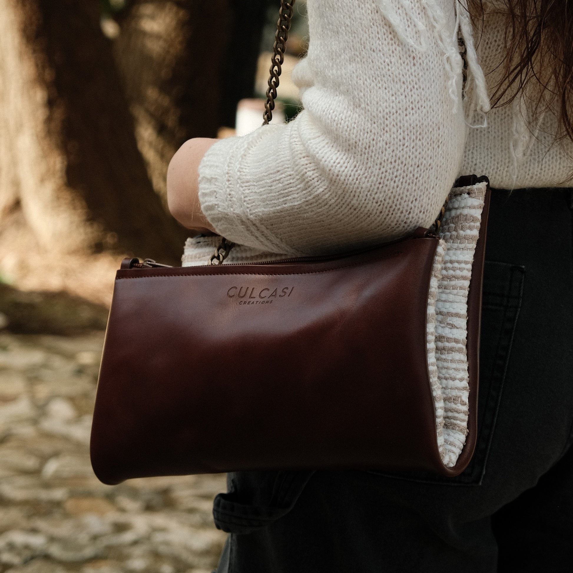 E' in questo modo che abbiamo creato la GNUTTICATA, congiungendo il nostro pregiato cuoio con una "trappita" artigianalmente tessuta al telaio seguendo le antiche tecniche della tradizione siciliana.