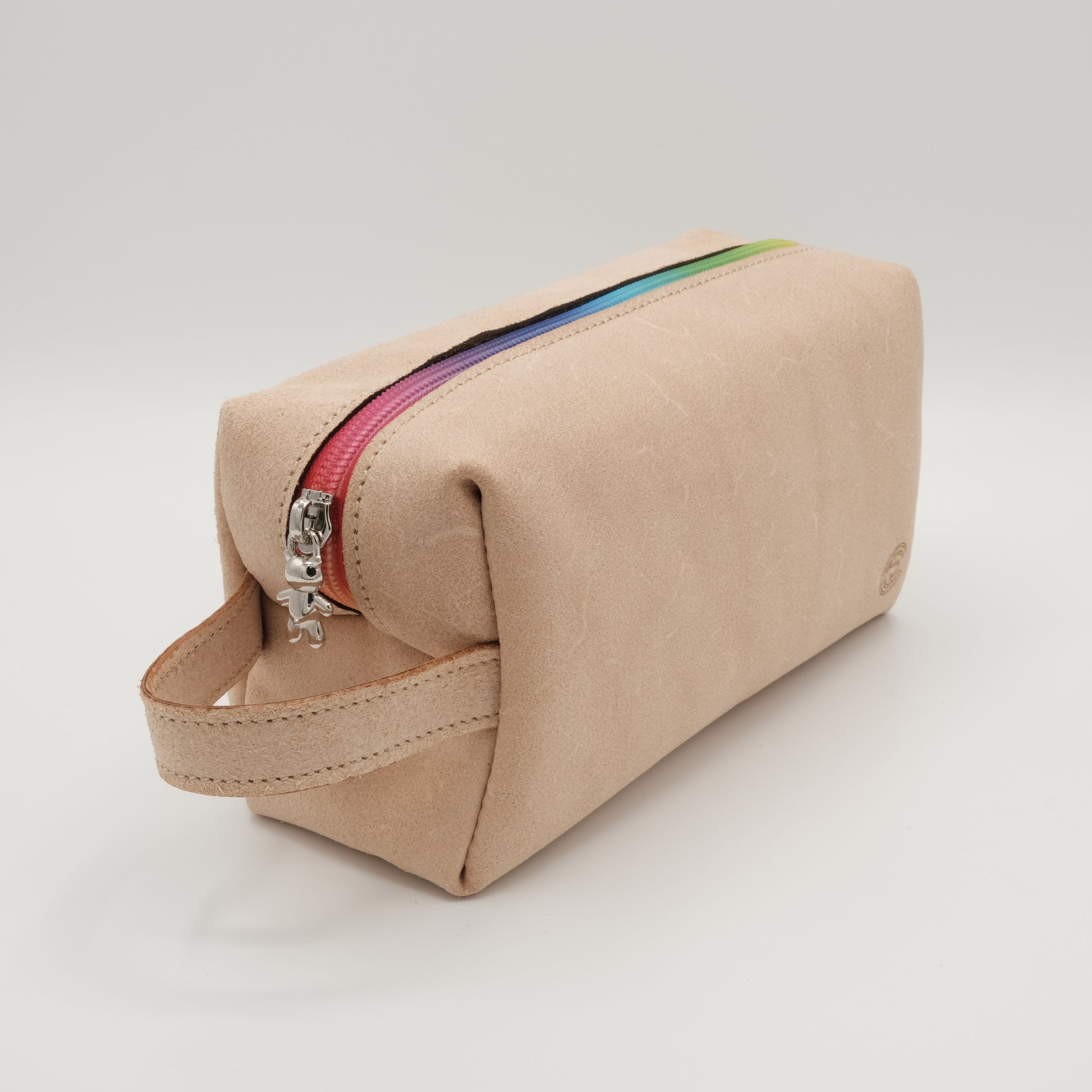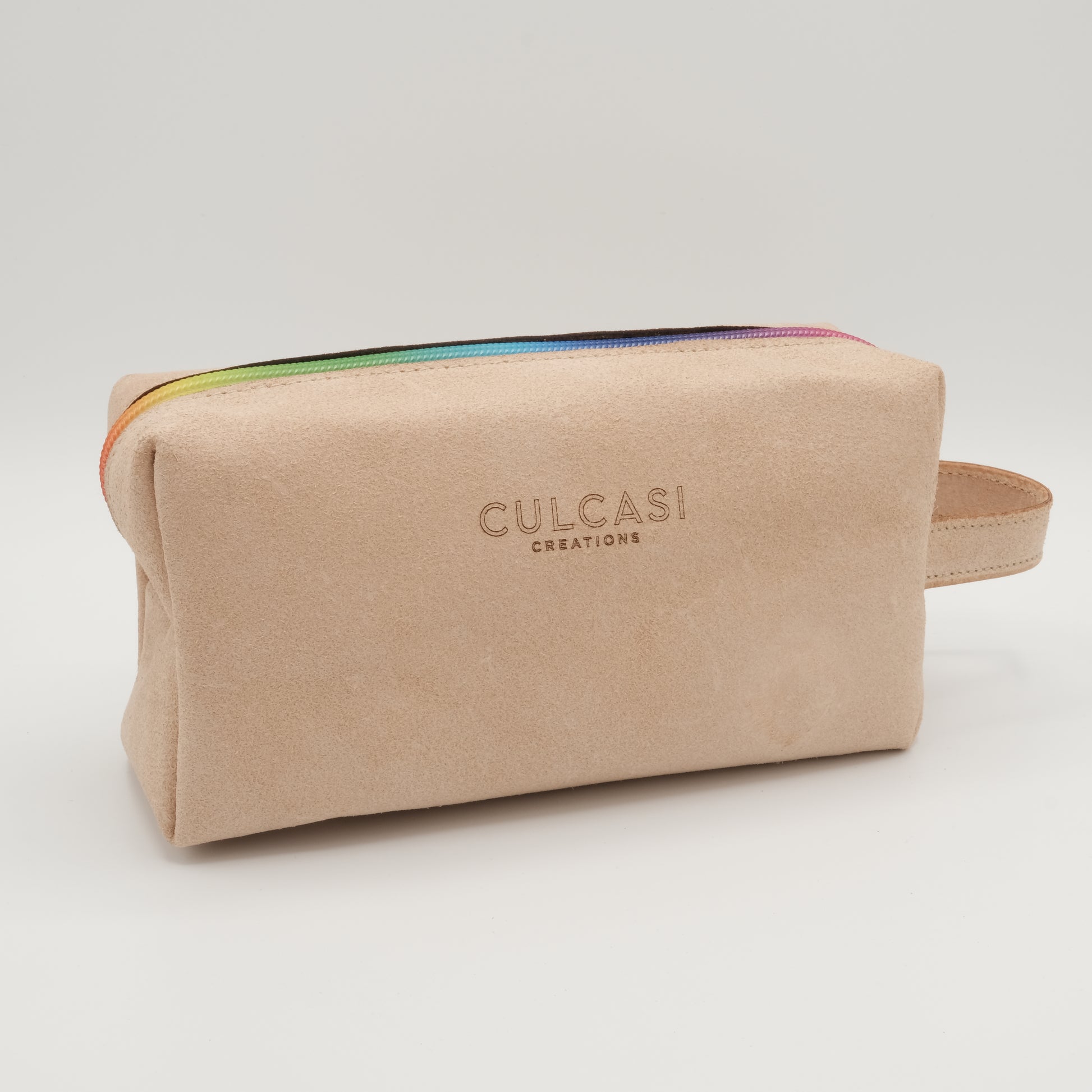 Questa pochette è realizzata in crosta vegetale, si tratta dello 'strato' inferiore di una spalla di vacchetta conciata al vegetale.
