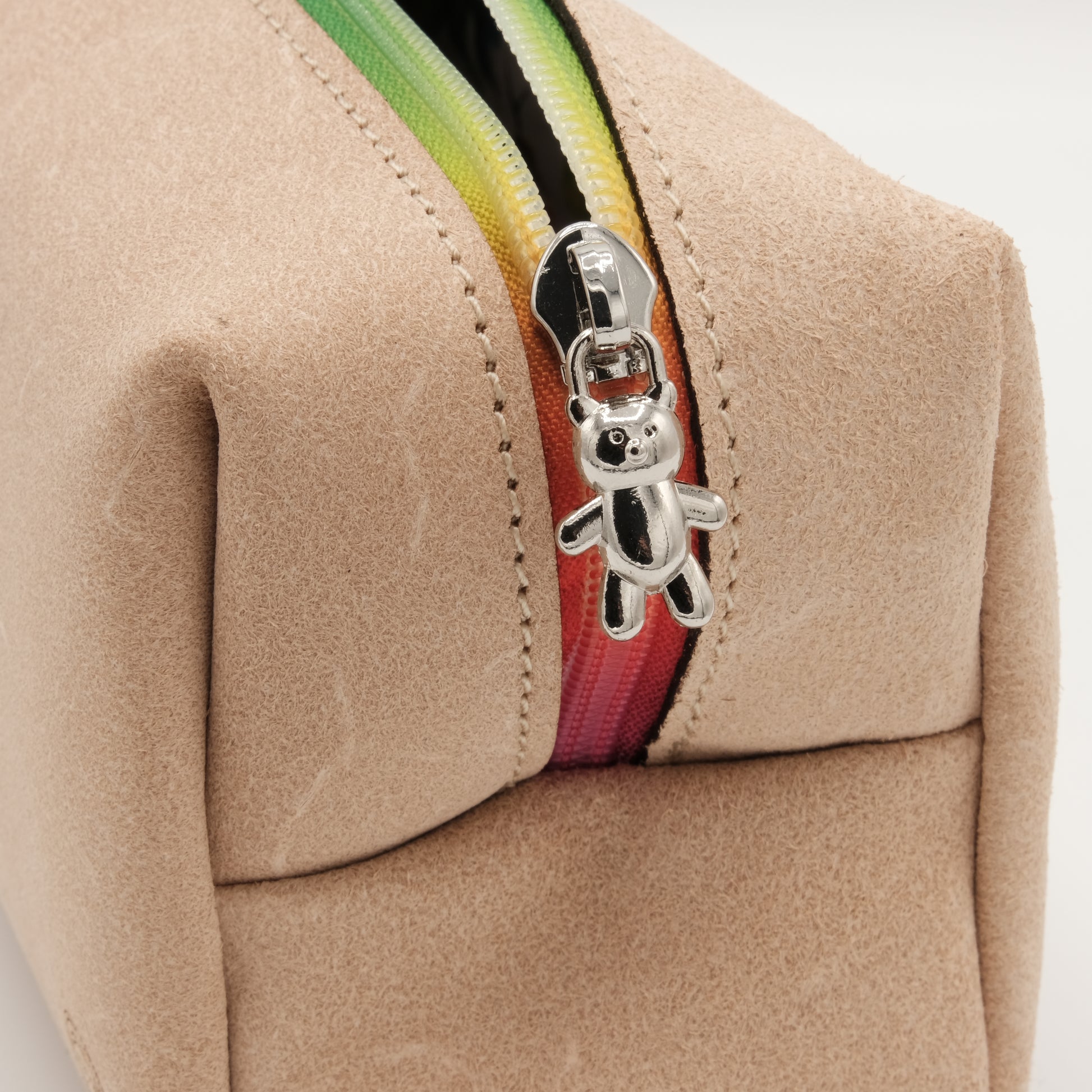 Inoltre è arricchita da una cerniera Rainbow, il cursore a forma di orsacchiotto e l'interno foderato con tessuti sempre coloratissimi.