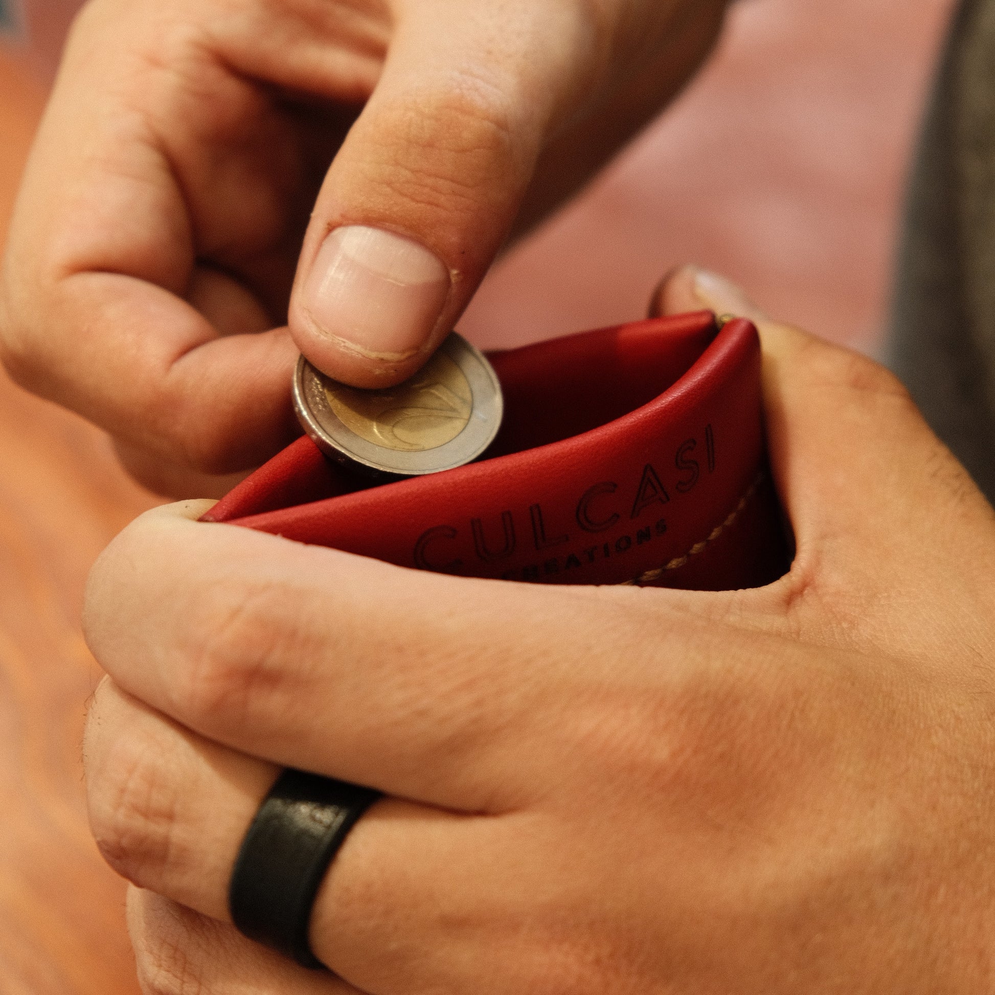 Porta monete in vera vacchetta italiana, conciata al vegetale in Toscana con l’utilizzo di prodotti 100% naturali.