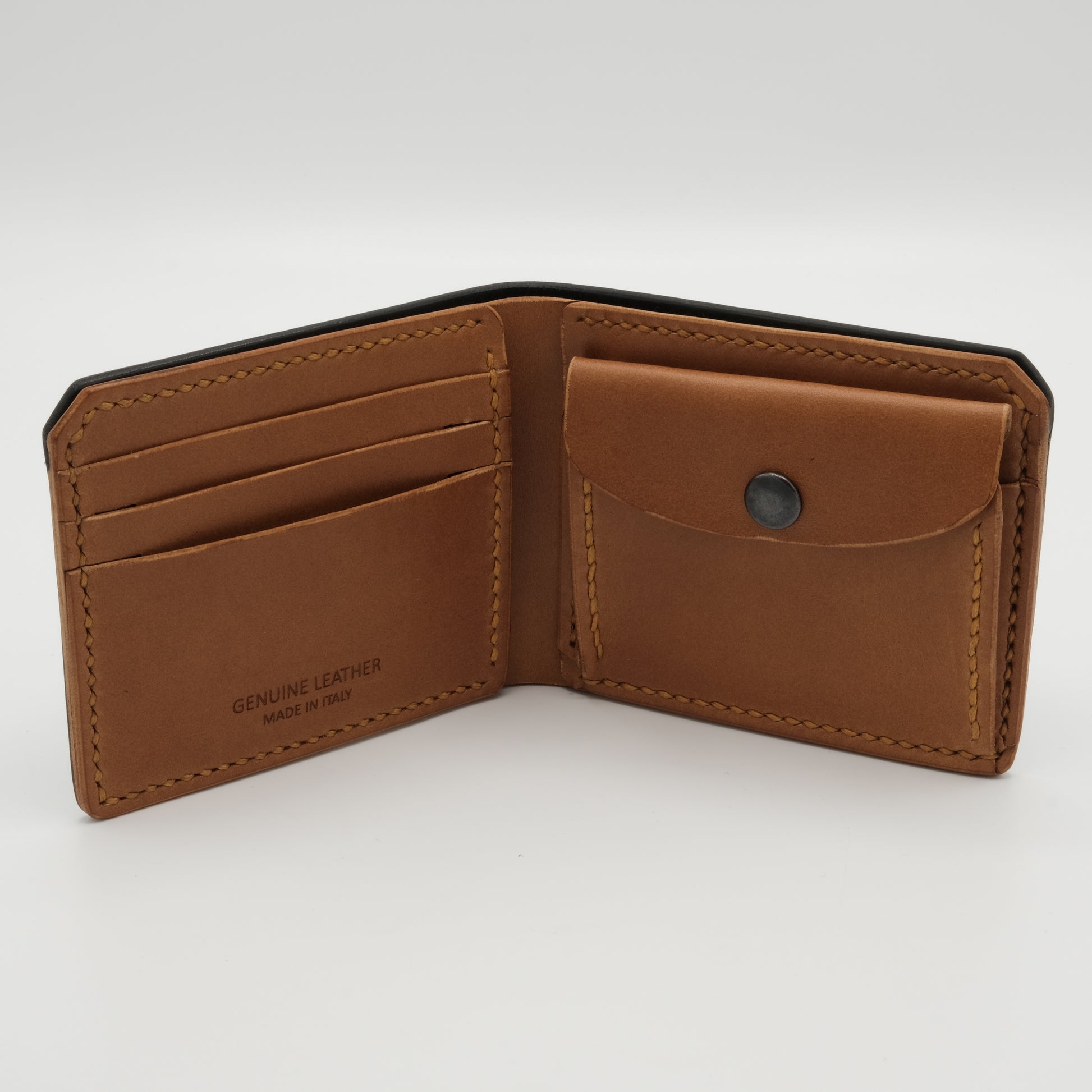 Portafoglio in vera pelle italiana, conciata al vegetale in Toscana con l’utilizzo di prodotti 100% naturali e cucito interamente a mano.